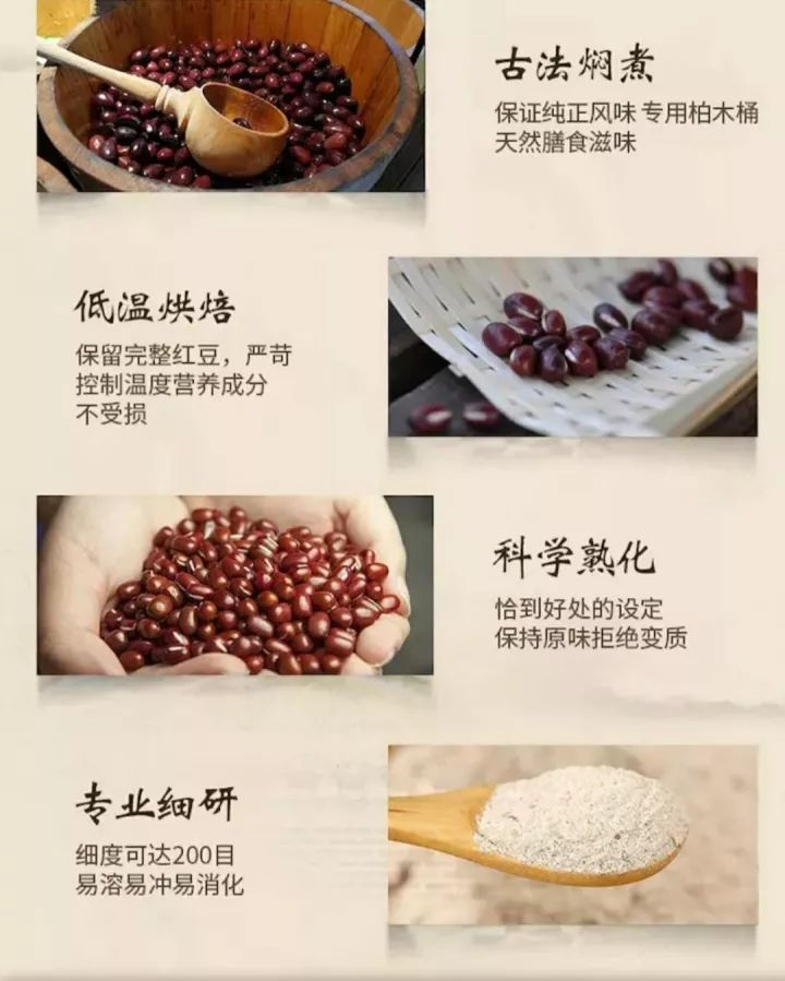 為了得到最好的薏仁紅豆粉,從老撾精心挑選薏米,運輸?shù)脚_灣進行脫殼(為了保持新鮮),精選臺灣紅豆進行有機收割(保證每一粒紅豆圓潤飽滿),采用最先進的熟化技術(shù)(為了保持營養(yǎng)),部分研磨成粉并添加澳洲燕麥和斯里蘭卡椰漿粉(增強營養(yǎng)和調(diào)味)...