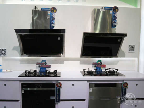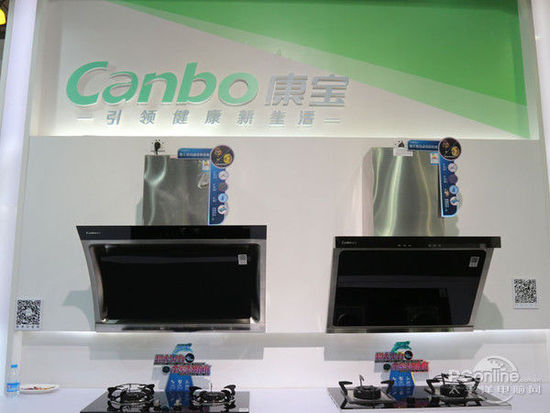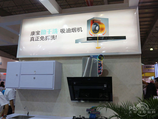 抽油煙機(jī)、燃?xì)庠睢⑶度胧较竟褚彩谴舜慰祵毊a(chǎn)品展出的重點(diǎn),康寶的展臺(tái)還特意搭建了完整的廚房展示區(qū)來(lái)展示他們的產(chǎn)品。