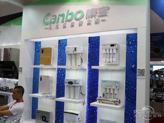 在凈水設(shè)備展示區(qū),康寶展出了他們一系列的凈水機(jī)產(chǎn)品,產(chǎn)品主要包括櫥下式和臺(tái)上式兩種。