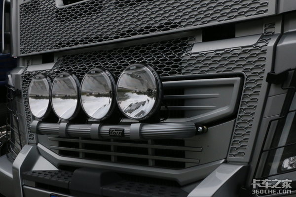 駕駛室上方與進氣格柵處共計9個的照明燈是它與普通版FH的區(qū)別。