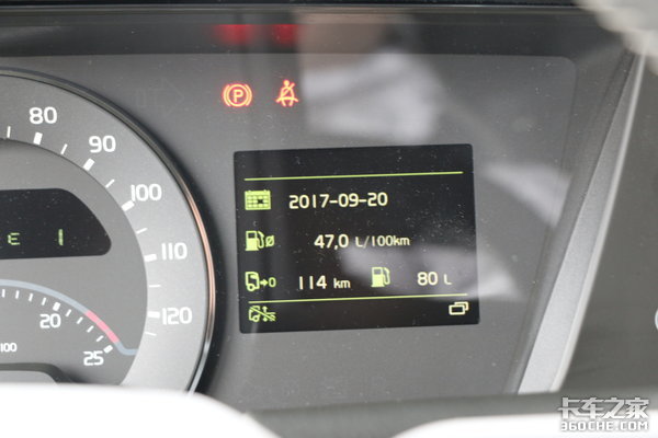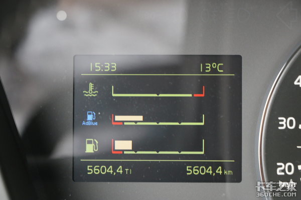 左側(cè)液晶屏幕可提供水溫、尿素量、燃油量、時間、溫度等信息。
