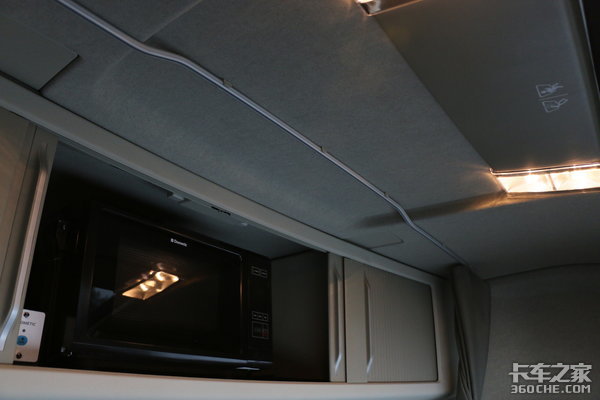 臥鋪上方除了儲物空間還帶有一個微波爐,平常開車時順手熱個飯、爆個米花啥的不僅節(jié)省時間,還能大大減少下車的頻率。