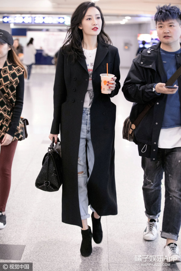 長(zhǎng)款大衣走路帶風(fēng)氣場(chǎng)十足,膚白貌美的她在大面積的黑色襯托下更美啦!超特出身的她也是腿長(zhǎng)任性,機(jī)場(chǎng)端著飲料也端出了女神范兒。
