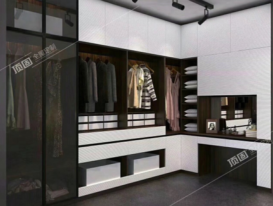 1、頂固全屋定制,高端衣柜只需向上延伸頂柜,輕松解決。