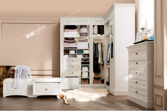 4、在小巧緊湊、不規(guī)則的空間,可以定制L型衣柜提高空間利用率。