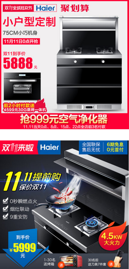 2017年11月11日01:00,海爾廚電傳出捷報(bào),天貓開(kāi)售1小時(shí)海爾集成灶銷(xiāo)量第一。