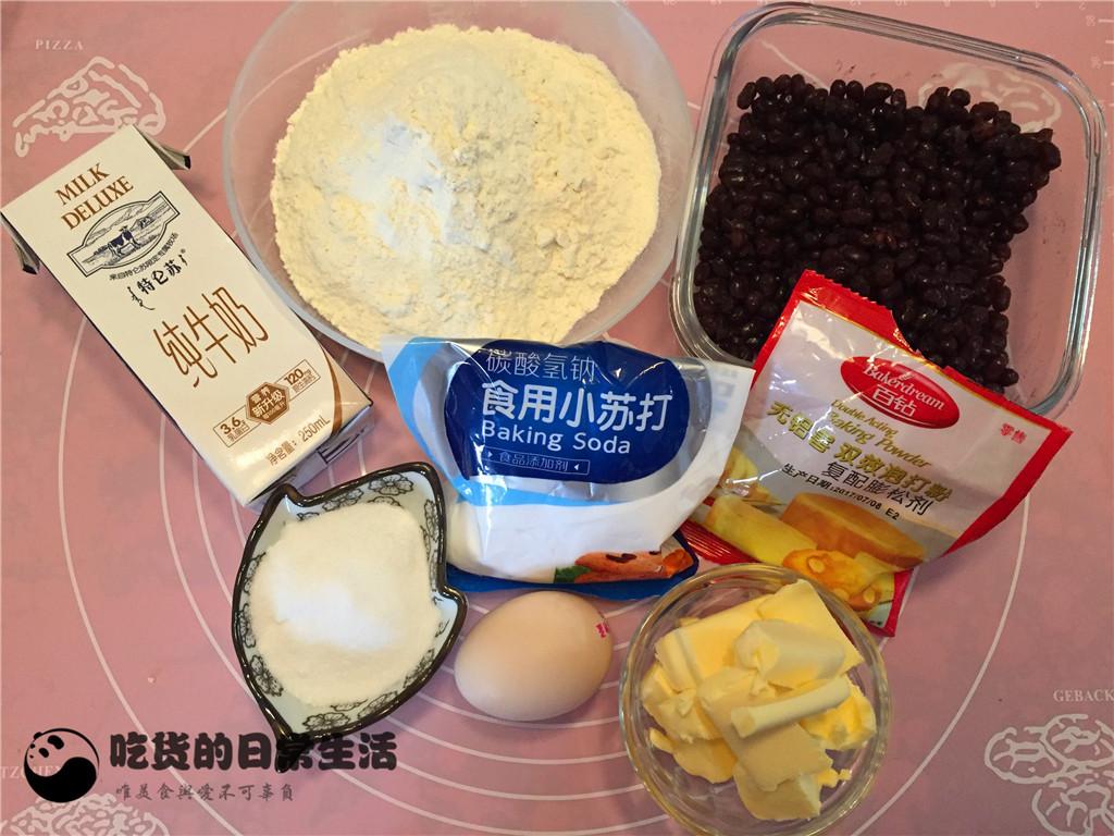 低筋粉200g,黃油80g,雞蛋1個,牛奶60ml,細砂糖40g,泡打粉5g,小蘇打1g,鹽1g,蜜豆適量