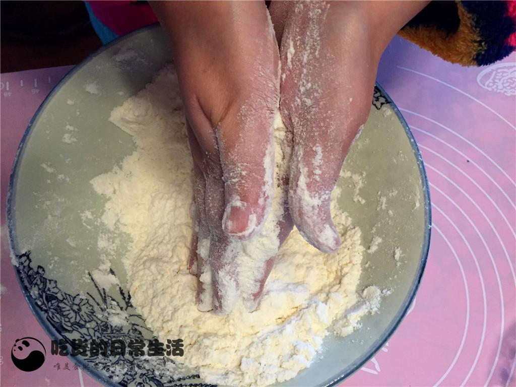 7、然后用筷子攪拌均勻,再用手和,直至和成面團。