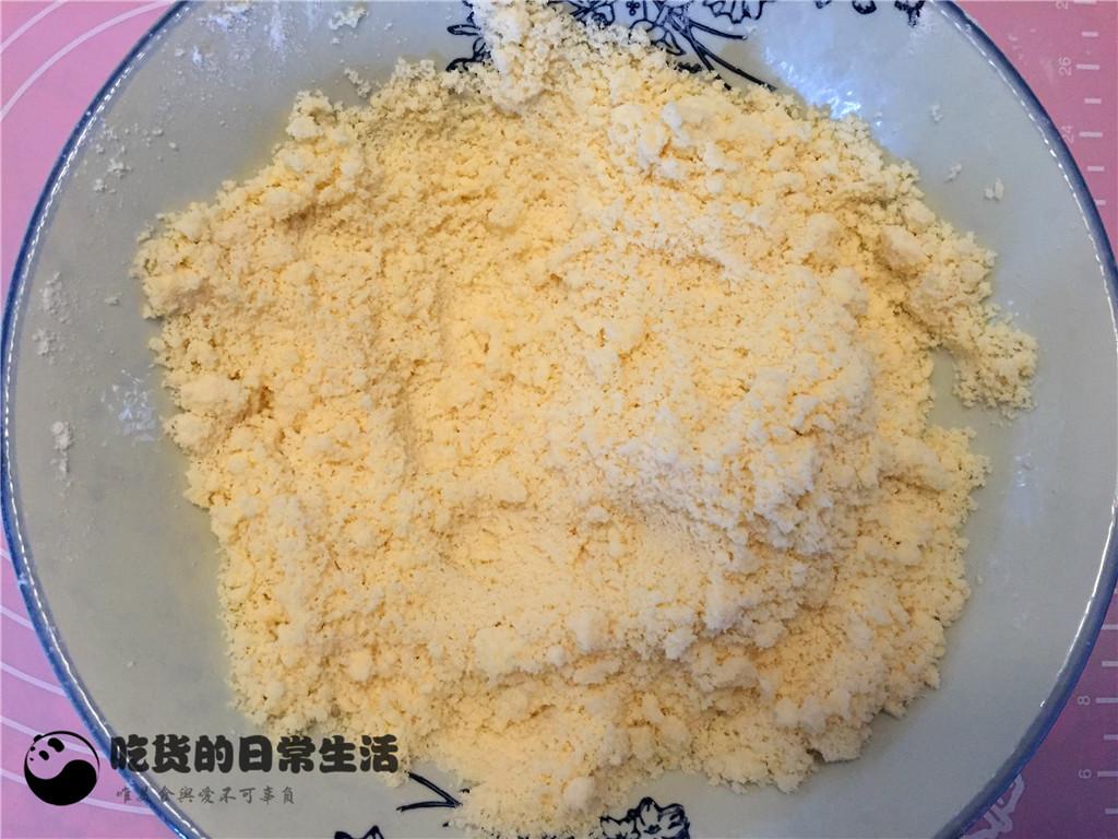 4、接下來就請粗暴的將面粉與黃油充分的混合均勻,搓成粗粉狀,搓好之后就像這個樣子啦。
