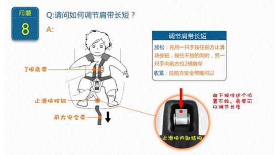 \u00A0\u00A0\u00A0 9~18KG的兒童:將兒童安全座椅調(diào)至正座位或者半躺位(第一、第二檔),同時(shí)將兒童安全座椅正向安裝,小孩子臉朝前。