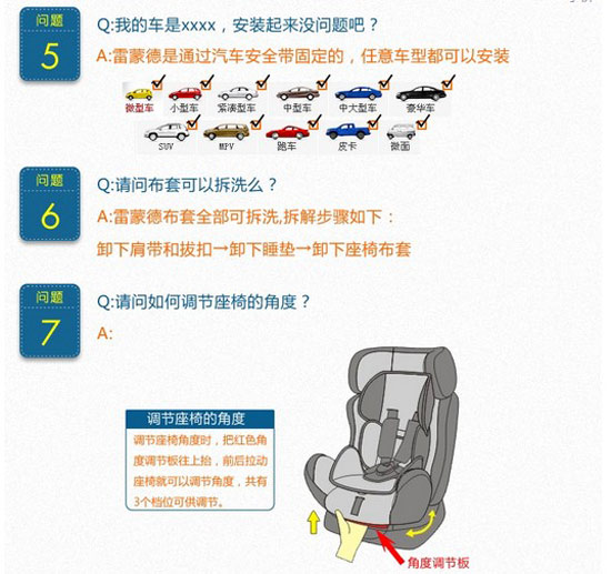 \u00A0\u00A0\u00A0 0~13KG的嬰兒:將兒童安全座椅調(diào)至最大傾斜角度(第三檔)兒童全躺座椅中,同時(shí)將兒童安全座椅反向安裝,小孩子臉朝后。