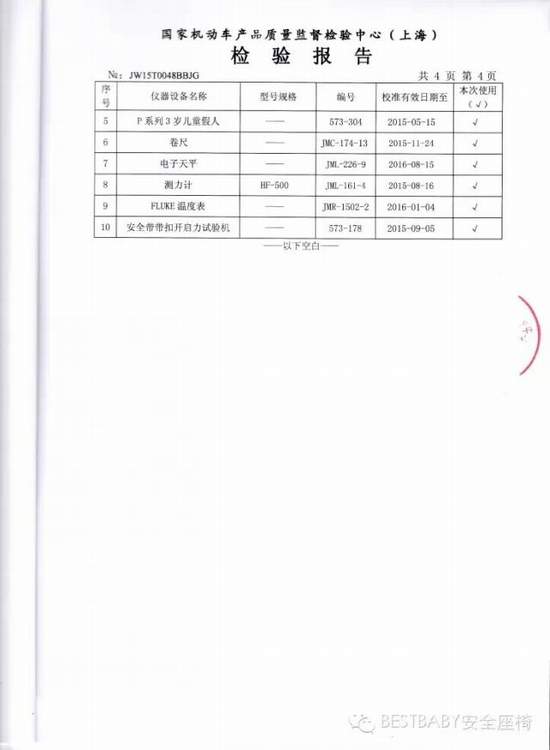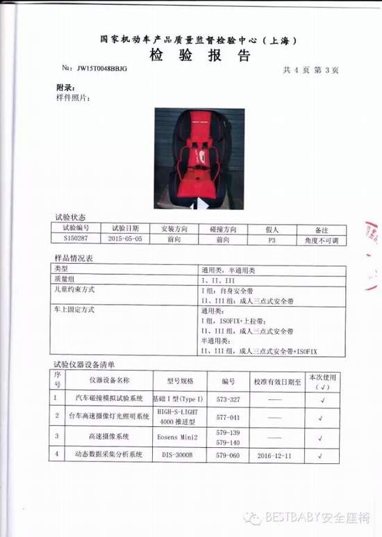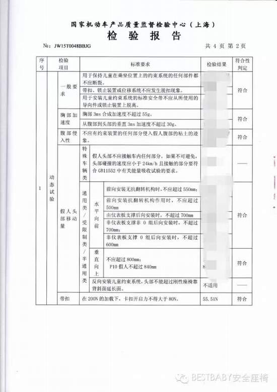 BESTBABY/佰佳斯特安全座椅檢驗報告
