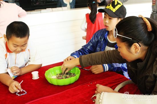 9點(diǎn)半左右,已經(jīng)有不少業(yè)主開(kāi)始親手制作自己喜愛(ài)的手鏈、項(xiàng)鏈等飾品,不少小朋友對(duì)這些很感興趣,紛紛動(dòng)起手來(lái)。