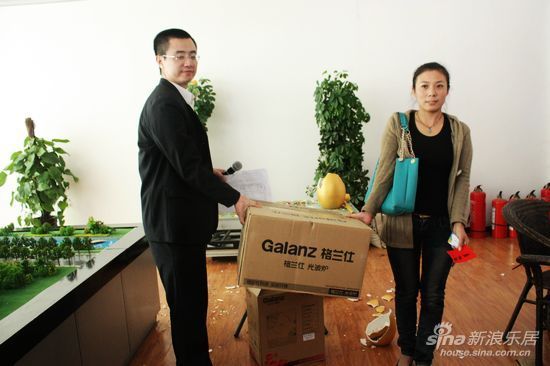 為了答謝業(yè)主們,香溪茗苑售樓部還為業(yè)主們準(zhǔn)備了獎(jiǎng)品,業(yè)主到場(chǎng)時(shí)便進(jìn)行了簽到領(lǐng)抽獎(jiǎng)號(hào),砸金蛋抽大獎(jiǎng)環(huán)節(jié)更是將活動(dòng)推向了高潮,被抽中的幸運(yùn)者可參與砸金蛋活動(dòng),四個(gè)金蛋均有大獎(jiǎng),電熱鍋、電磁爐、微波爐、電加濕器紛紛落入幸運(yùn)業(yè)主之手。