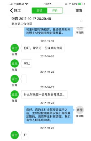客戶如有任何問(wèn)題或意見(jiàn),都可以通過(guò)APP上的“反饋評(píng)價(jià)”功能在線進(jìn)行反饋,業(yè)之峰將有專人對(duì)其進(jìn)行追蹤跟進(jìn),及時(shí)為客戶答疑解惑、解決問(wèn)題。業(yè)之峰總裁、總經(jīng)理也會(huì)對(duì)此進(jìn)行關(guān)注,督促相關(guān)人員及時(shí)進(jìn)行解決。此外,在APP上還可以在線查看施工團(tuán)隊(duì)的電話,在線聯(lián)系設(shè)計(jì)師、家居顧問(wèn)、大項(xiàng)目經(jīng)理、質(zhì)檢等,實(shí)現(xiàn)“一鍵找人”。