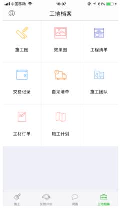 “峰巢系統(tǒng)”工程管理APP包含全套“工地檔案”,即:施工圖、效果圖、工程清單、交費(fèi)記錄、自采清單、施工團(tuán)隊(duì)、主材訂單、施工計(jì)劃等,讓客戶對(duì)施工全過(guò)程做到了然于胸,過(guò)程留痕。