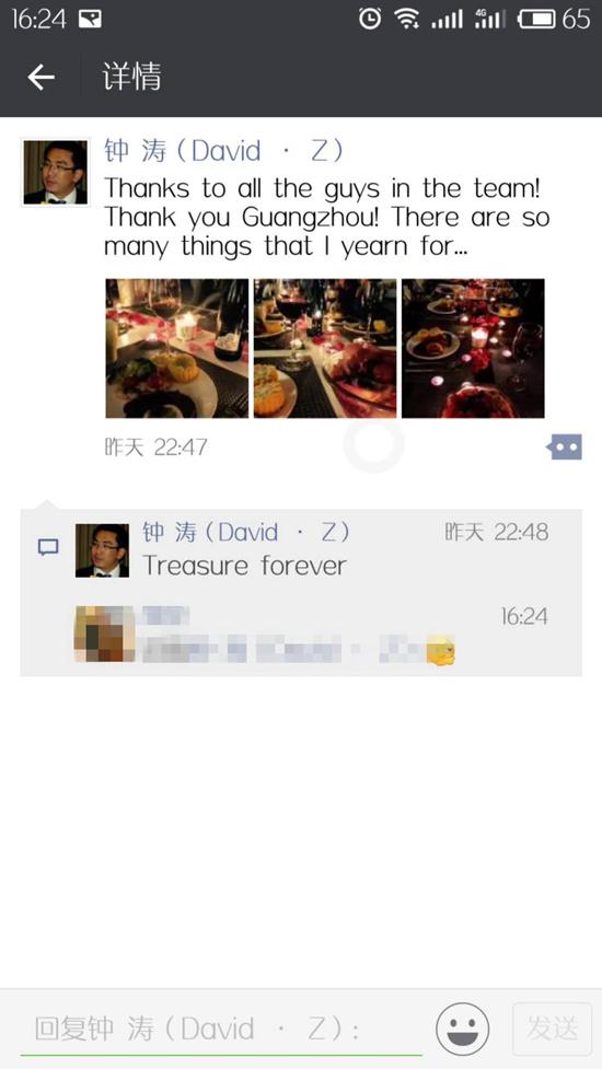 (鐘濤在微信朋友圈發(fā)布的“告別”語)