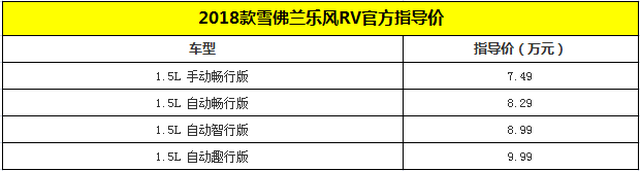 雪佛蘭旗下2018款樂風(參配、圖片、詢價) RV正式上市,新車售價區(qū)間為7.49-9.99萬元,共推四款車型。相比現(xiàn)款車型,新款樂風RV主要變化集中在配置方面的調整。