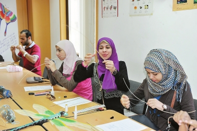 9月1日,開(kāi)羅中國(guó)文化中心舉辦了首期風(fēng)箏制作培訓(xùn)班。第一天上課,教室里座無(wú)虛席,興致盎然的學(xué)生們?cè)缭鐪?zhǔn)備好了剪刀、尺子等工具等候在教室。出于對(duì)風(fēng)箏制作的好奇,有的媽媽還帶上孩子一起來(lái)參加。