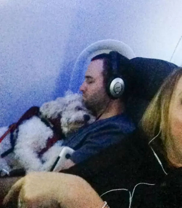“有了狗狗的陪伴,這場飛行也不那么難熬了!”