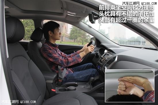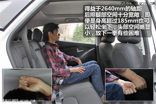 空間方面:現(xiàn)代ix35車身尺寸為長(zhǎng)4420mm×寬1820mm×高1660mm,軸距為2640mm,與同級(jí)競(jìng)爭(zhēng)車型相比,內(nèi)部空間還算不錯(cuò),身高180cm左右的人都能找到舒適的坐姿。后排腿部空間比較充裕,中等身高的人都能有一拳頭左右的余量,而且后排地板平整可以容下三人乘坐,不足的是沒(méi)有中間頭枕。
