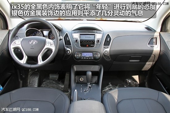 \u00A0北京現(xiàn)代ix35金秋酬賓優(yōu)惠報(bào)價(jià)\u00A0巨獻(xiàn)特價(jià)來(lái)襲 車內(nèi)中控整體造型看上去很有現(xiàn)代感,尤其是具有一定層次感的中控臺(tái),傾斜樣式設(shè)計(jì)能夠方便前排乘客查看,整體材質(zhì)選擇也很柔和。方向盤采用四幅樣式設(shè)計(jì),碩大的銀色裝飾增加了方向盤的整體質(zhì)感,儀表盤并沒(méi)有太多創(chuàng)新樣式,多處液晶屏選擇藍(lán)色背景燈光,增加了一定的視覺(jué)效果。