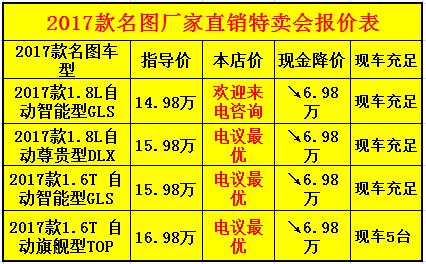 注:裸車銷售,無任何附加費用,特賣會期間優(yōu)惠力度比較大只面向個人不面向經(jīng)銷商,需本人攜帶本人身份證到店提車,車主與本人一致拍照存根可免費領(lǐng)取廠家贈送原廠裝飾豪華大禮包。活動僅限5天結(jié)束后,恢復(fù)店內(nèi)正常銷售價格敬請諒解。