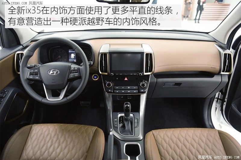 內(nèi)飾方面:北京現(xiàn)代ix35的內(nèi)飾沿用了現(xiàn)款的設(shè)計風格,獨特的“X”型中控臺不僅擁有很強的立體感,同時各功能區(qū)域的布局簡潔清晰,上手毫無難度。本次實拍的車型采用了全黑的內(nèi)飾配色,并點綴上銀色裝飾,讓車內(nèi)的氛圍變得更運動也更有檔次感。此外,新款ix35內(nèi)飾的做工還算精細,各部件的接縫比較均勻,但用料依舊以較硬的塑料件為主。
