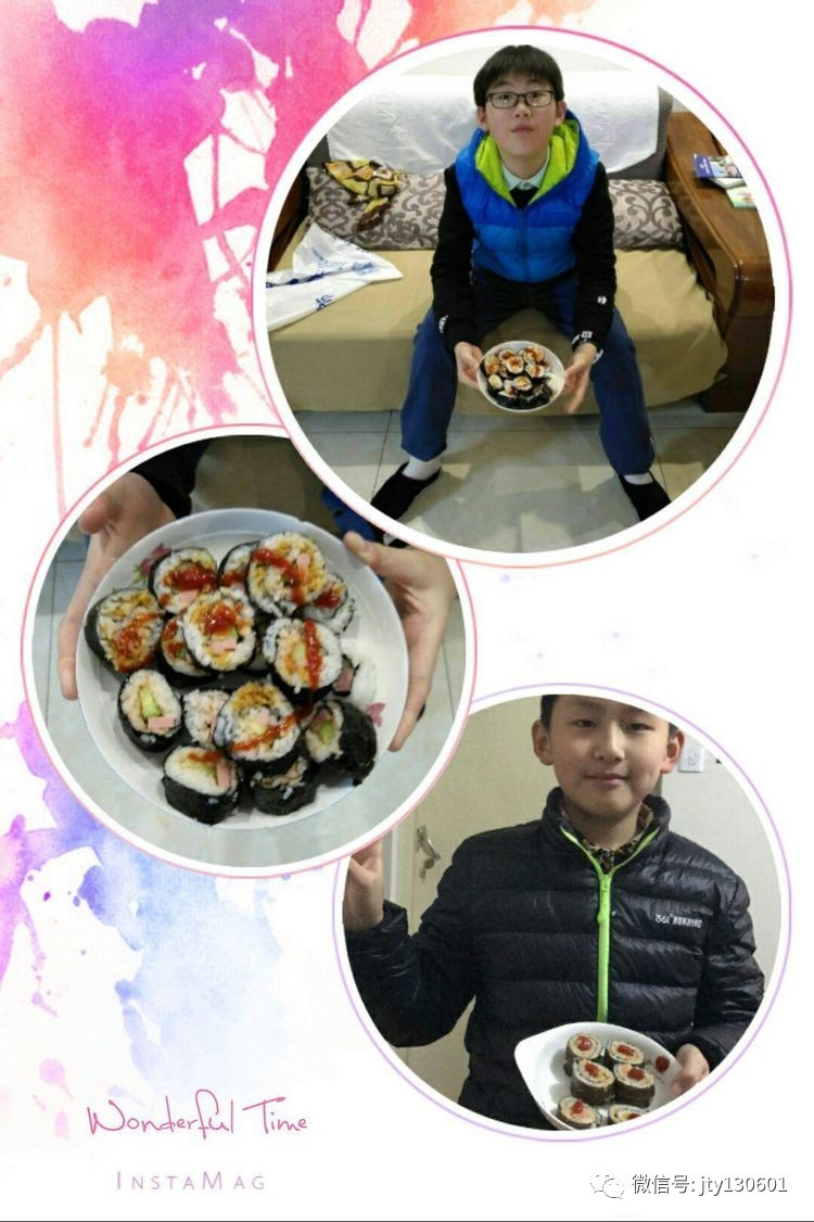 回到家,孩子們也沒(méi)歇著!因?yàn)樾⌒〉膲鬯净顒?dòng),我們不僅僅是學(xué)校內(nèi)有收獲,家里更要有愛(ài)的播撒,學(xué)會(huì)分享,學(xué)會(huì)感恩,小小的壽司已經(jīng)很難做了,那家里的美味佳肴就更來(lái)之不易了,感恩家人的付出,慰藉他們的辛勞。