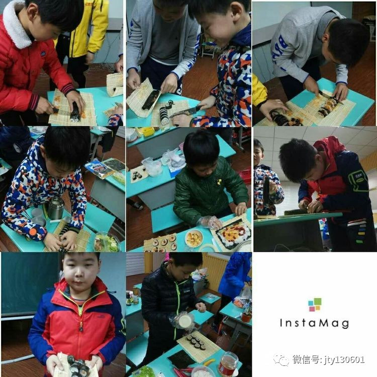 再來(lái)一波舞臺(tái)秀。 哈哈,理想很豐滿,現(xiàn)實(shí)很骨感啊! 別看這些光鮮亮麗的照片啦,幕后的問(wèn)題是層出不窮哦! 心思大,好多配料卷不起來(lái);略顯怯懦,不敢放料,不敢卷。 好不容易卷好了,準(zhǔn)備擺盤,切散了……這可怎么辦呢?簡(jiǎn)單,塞嘴里,可不能影響視覺(jué)美。 方法總比困難多,孩子們有的相互幫忙,有的找老師協(xié)助,有的就像十萬(wàn)個(gè)為什么……是啊,初次體驗(yàn),這份付出不僅僅得到了一份壽司,更是生活技能的提升,是同學(xué)情誼的提升,是師生情的提升………