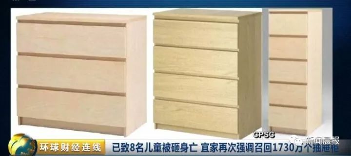 又有一名兒童被翻倒的宜家抽屜柜砸中身亡!宜家(IKEA)日前再次強(qiáng)調(diào)召回共計(jì)1730萬個(gè)抽屜柜,截至目前類似事故已造成8名兒童死亡。