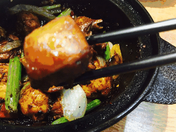打開(kāi)蓋子后,煙霧彌漫,濃濃的香味頓時(shí)就彌漫了整個(gè)屋子。簡(jiǎn)直香到無(wú)朋友~大家對(duì)雞肉一點(diǎn)都不陌生,但是雞肉配上特制調(diào)味料以及中草藥,你或許曾嘗過(guò),香辛料味滲入雞塊中,肉質(zhì)鮮嫩適口,帶有少許甜味,又有種干鍋與香鍋的的味道,越吃越想吃..