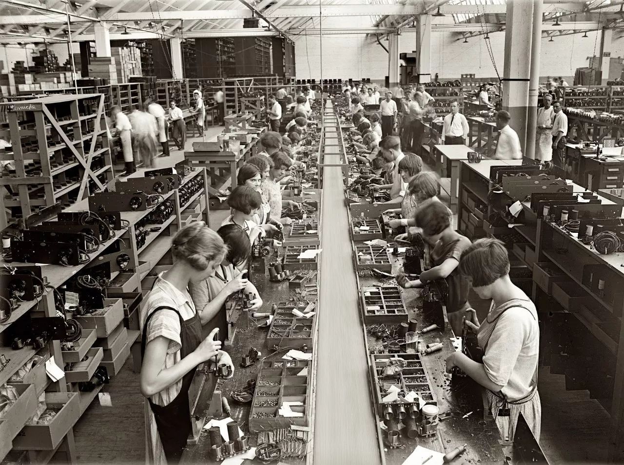 同時代的工廠中女工的勞動場景。