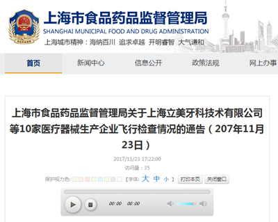 中國質(zhì)量新聞網(wǎng)訊 11月23日,上海市食藥監(jiān)局官網(wǎng)發(fā)布通告稱,根據(jù)《藥品醫(yī)療器械飛行檢查辦法》,結(jié)合《2017年醫(yī)療器械監(jiān)管工作計(jì)劃》的要求,近日該局組織對部分醫(yī)療器械生產(chǎn)企業(yè)開展了飛行檢查,現(xiàn)將檢查結(jié)果通告如下: