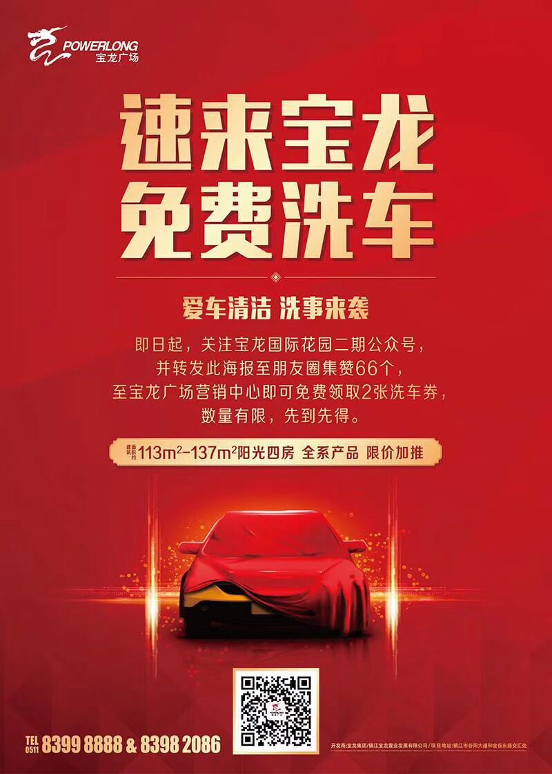 \u00A0 \u00A0 \u00A0即日起,關(guān)注寶龍國際花園二期公眾號,并轉(zhuǎn)發(fā)海報至朋友圈集贊66個,至寶龍廣場(動態(tài) 圖庫 戶型)營銷中心即可免費領(lǐng)取2張洗車券,數(shù)量有限,先到先得。