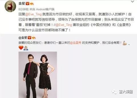 《金星秀》突然停播,引發(fā)廣大網友熱議。而早前曹可凡接受采訪時曾這樣評價“真人秀節(jié)目”:傾注所有資源于真人秀,無異于飲鴆止渴。金星發(fā)布微博稱:“就是因為節(jié)目做得好,收視率又居高,就遭到小人的嫉妒!自己沒本事吧就寫信給領導,領導為了自保就先把節(jié)目撤掉;到頭來觀眾沒了節(jié)目看,眼看著番茄爛掉!” 那么此人會是誰呢?不用想,就是曹可凡了。