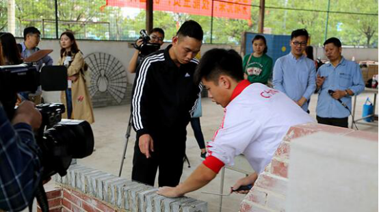 在教練林曉濱的解說下,世界技能大賽砌筑冠軍梁智濱向媒體記者現(xiàn)場展示了砌磚、砌筑、勾縫、抹灰、清潔等流程,動作一氣呵成,作品精度準確,墻面清潔,勾縫勻稱,外形美觀,得到眾人的贊賞。學校副校長賀江春介紹:梁智濱同學是2014級建筑工程施工專業(yè)的學生,建筑工程施工專業(yè)是學校于1958年剛創(chuàng)辦時就開設(shè)至今的專業(yè),砌筑是該專業(yè)其中一項工程實操,學校在教學計劃安排了實操周。兩年前,梁智濱在教學計劃內(nèi)技能訓練的基礎(chǔ)上,參加了學校技能節(jié)的砌筑項目競賽并獲得一等獎,從此與砌筑結(jié)下不解之緣。經(jīng)過學校組織的集訓后,他通過層層選拔,最終取得代表國家參加這個項目的資格。本次世賽上強手如林,來自德國、英國、奧地利、丹麥等諸多砌筑項目傳統(tǒng)強國的選手們摩拳擦掌,梁智濱不畏強手,沉著應(yīng)戰(zhàn),在比賽中保持節(jié)奏、發(fā)揮水準,終于以不超1毫米誤差的垂直度、平整度以及清潔的墻面外觀以及對時間的準確把握,砌出了三面“高顏值”墻,戰(zhàn)勝了29位對手,為中國捧回世界技能大賽砌筑項目第一枚金牌。