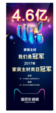 2016年,諾貝爾瓷磚與阿里巴巴達成重點戰(zhàn)略合作,雙方在數(shù)據(jù)應(yīng)用、O2O業(yè)務(wù)探索、智慧門店等項目中深化合作、持續(xù)推進。升級后的電商團隊高效整合線上、線下資源,推動線上店鋪發(fā)生質(zhì)的飛躍,助力線下客流質(zhì)的提升。同時高效能進駐京東、蘇寧,并引領(lǐng)電商異業(yè)聯(lián)合營銷平臺——江湖建材聯(lián)盟,這些組合拳為諾貝爾電商業(yè)務(wù)提供了新的發(fā)展思路和成長動力。當年諾貝爾瓷磚憑借一張“黑板報”開啟了屬于自己的雙十一精彩之旅,聯(lián)合線下800家門店同時發(fā)力,通過視頻、H5、熱點圖和各個專業(yè)家裝平臺的多層次、全方位持續(xù)曝光,整個營銷節(jié)奏緊湊有序、整體運營體系配合默契,最終諾貝爾收獲1.7億的破紀錄戰(zhàn)績。諾貝爾瓷磚也首次成為天貓年度商家,登上“2016年度雙十一天貓家裝主材類目行業(yè)銷量第一”的寶座。