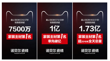 上午11點諾貝爾瓷磚代表家裝主材類目,率先突破3億歷史大關(guān)