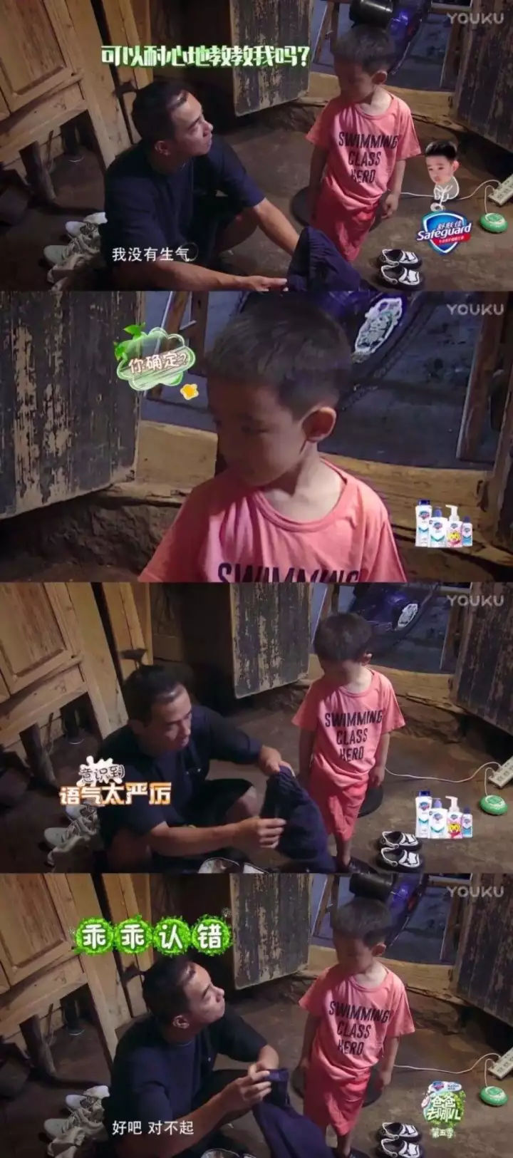 面對時(shí)時(shí)暴躁到讓觀眾們都嚇一跳的陳小春,他竟然也不像一般的小孩子一樣哭,而是耐心的講道理。