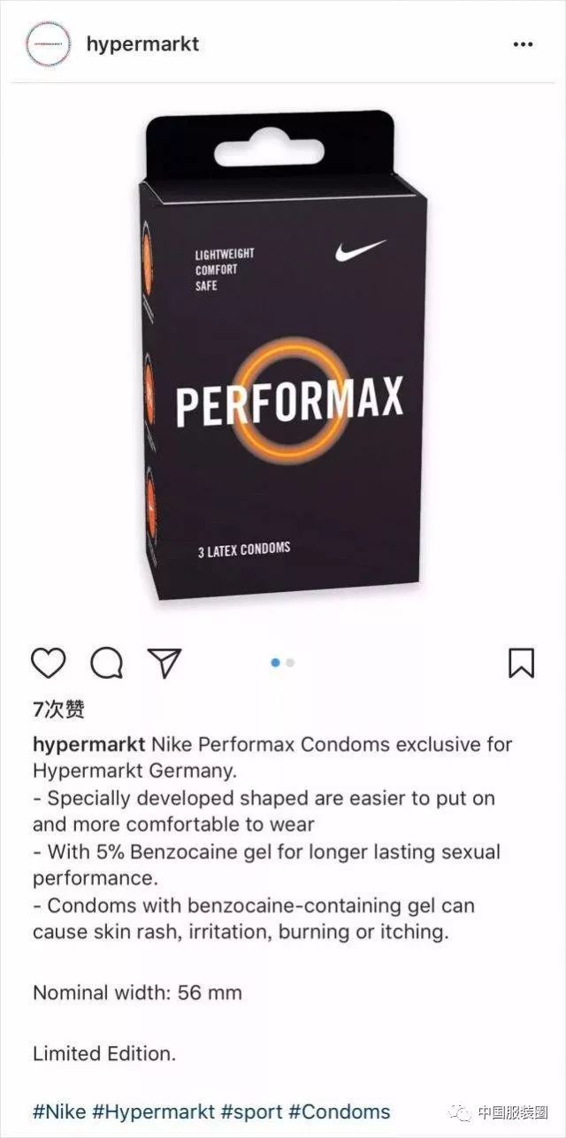 近日,Hypermarkt在其社交平臺instagram曬出一組照片。照片內(nèi)容正是印有各大運(yùn)動(dòng)品牌logo的生活及情趣用品。其中,印有耐克logo的避孕套引來網(wǎng)友熱議。