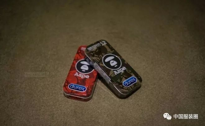 說起服飾跨界避孕套,其實(shí)確有其事。早在2014年,潮牌A Bathing Ape的副牌AAPE就與durex杜蕾斯推出了聯(lián)名避孕套鐵盒裝。那次聯(lián)名系列中,durex與AAPE共推出了兩款大小的避孕套鐵盒裝:小盒3只裝和大盒12只裝。