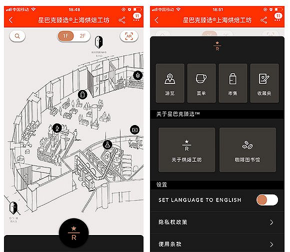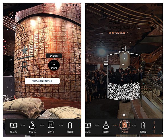更重要的是,這家門店是星巴克第一家“智慧門店”,首次將AR場景大規(guī)模用在商業(yè)環(huán)境中。想給用戶打造出一個“咖啡博物館”的概念。