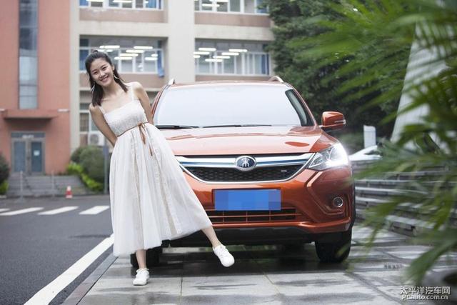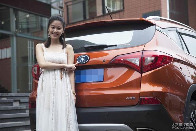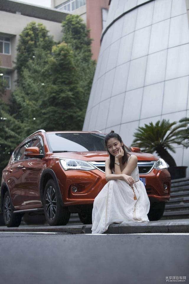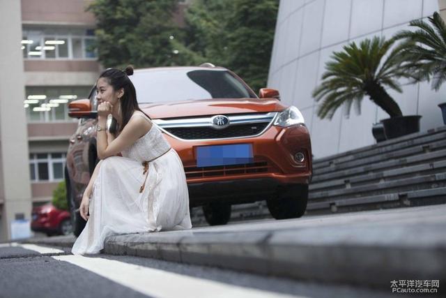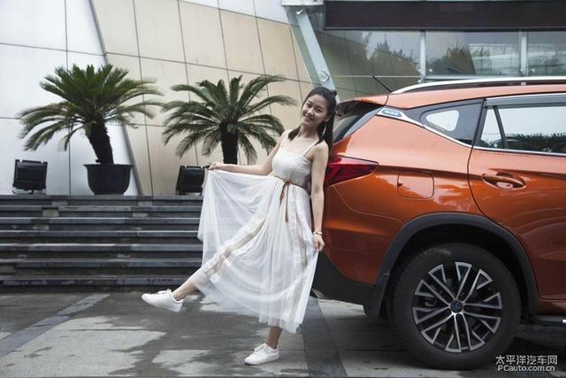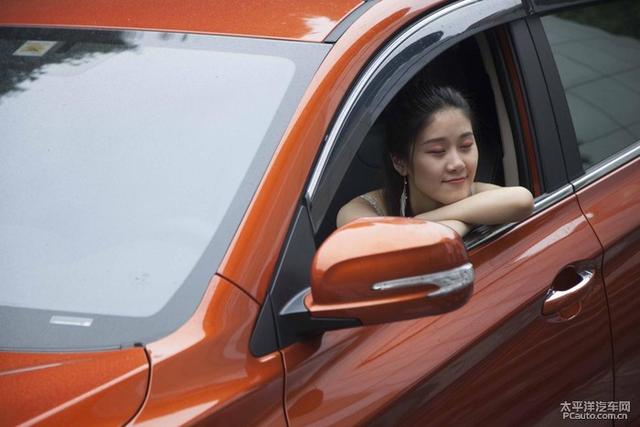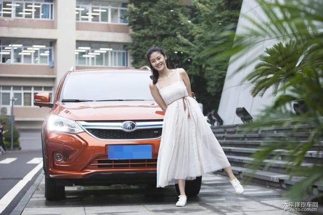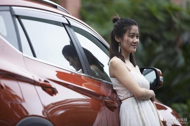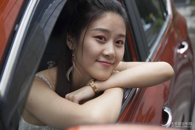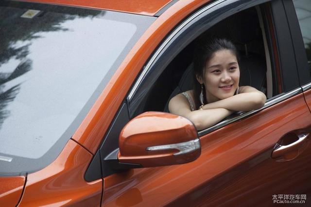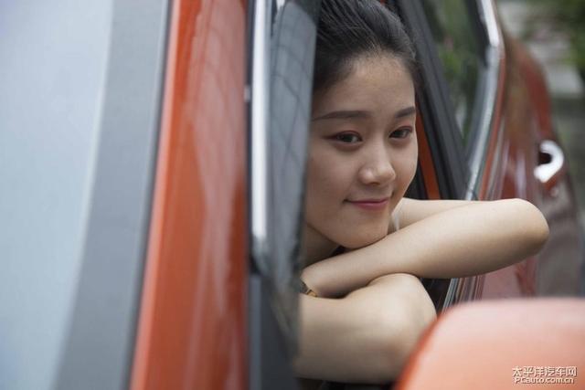 車身還是比較高的,媳婦站直,我讓她找個東西搭著才顯得自然點,但是拍下來發(fā)現(xiàn)只能夠著反光鏡。下次得嘗試門把手,可能更自然