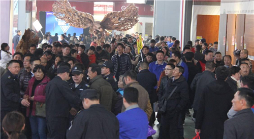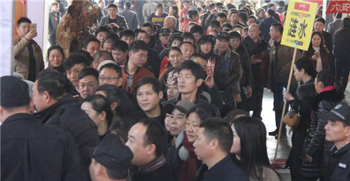 滿載蘇浙皖客戶的大巴車一輛又一輛地駛?cè)雭戆补S,一批批客戶擁入布置一新的會場。