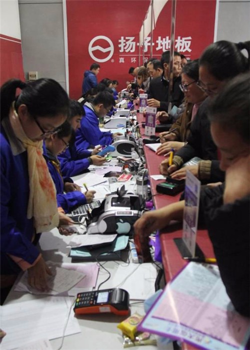 來自滁州的黃女士說:“我們小區(qū)很多家都是在揚(yáng)子地板訂的,十多天我就在滁州居然之家店報(bào)了名,今天上大巴車還碰到2家認(rèn)識的。到這兒來之后,沒想到人這么多,訂單、買單排隊(duì)都排老長了。”
