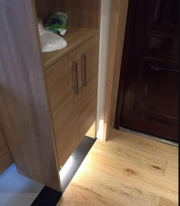 入戶先來,鞋柜設計的很小,木工師傅現場做的,還是蠻喜歡的,為了換鞋方便,底部空間安裝了燈帶。