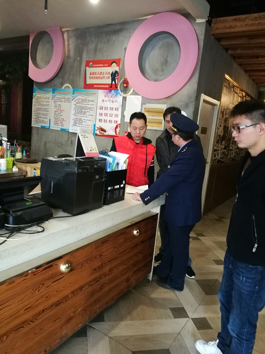 文廣新局的派駐人員查看了網(wǎng)咖是否按規(guī)定登記人員信息,是否有未成年人上網(wǎng),凈網(wǎng)先鋒系統(tǒng)是否正常工作,禁煙標(biāo)識(shí)是否明顯、連電腦上的游戲也查看了一番。其他人員分別負(fù)責(zé)消防通道、食品經(jīng)營(yíng)許可證、營(yíng)業(yè)執(zhí)照等項(xiàng)檢查。