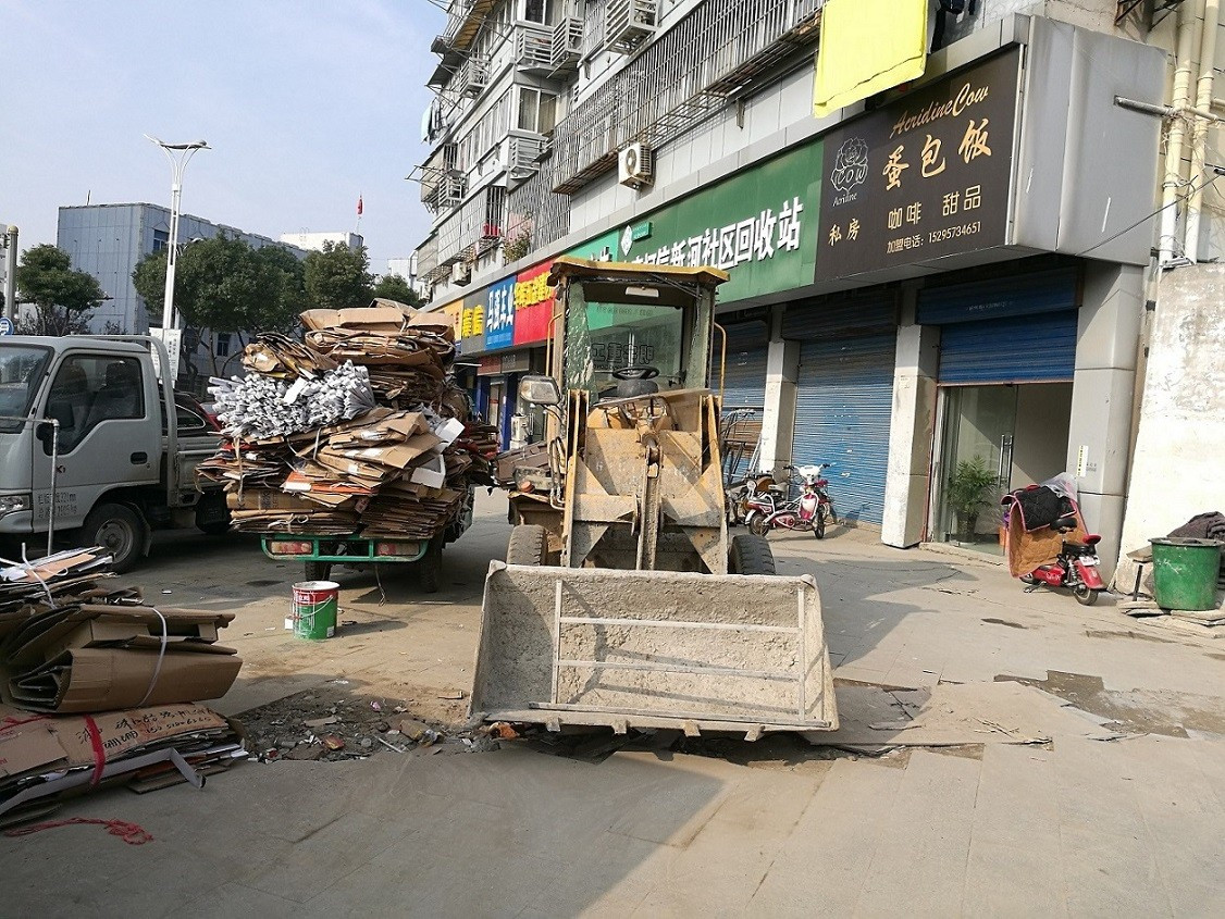 來(lái)自同心社區(qū)的社工兼網(wǎng)格長(zhǎng)已經(jīng)在現(xiàn)場(chǎng)等候了,她在每天例行的巡查中發(fā)現(xiàn)這家廢品回收站有亂堆雜物、車輛隨意亂停的問(wèn)題。接到工單的隊(duì)員們趕到現(xiàn)場(chǎng)。檢查營(yíng)業(yè)執(zhí)照,指出占道問(wèn)題,要求整改處置。