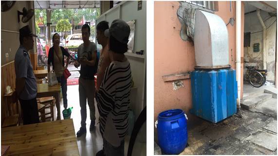 店內(nèi)裝修已經(jīng)齊全,門(mén)口貼著暫停營(yíng)業(yè)的字樣,店鋪里沒(méi)有用餐人員,一切看其來(lái)很正常。“上周社工巡查的時(shí)候,發(fā)現(xiàn)這家餐飲的證照還沒(méi)齊全,卻已經(jīng)有人在里面就餐,就向我們通報(bào)了。我們立刻趕到現(xiàn)場(chǎng)查看,要求他們暫停營(yíng)業(yè),今天是檢查回頭看。”在詢問(wèn)了辦證進(jìn)度,觀察了垃圾回收裝置后,又反復(fù)叮囑了店主拿到證照再依法經(jīng)營(yíng),隊(duì)員們告辭離開(kāi)。